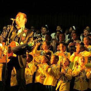 'n Paar van die koorlede van Junior Primêr (Geel), Principia Primêr (blou) en Laerskool van Reede (groen en wit) wat Dinsdagaand saam met Jakkie Louw opgetree het ten bate van Cansa Relay for life.