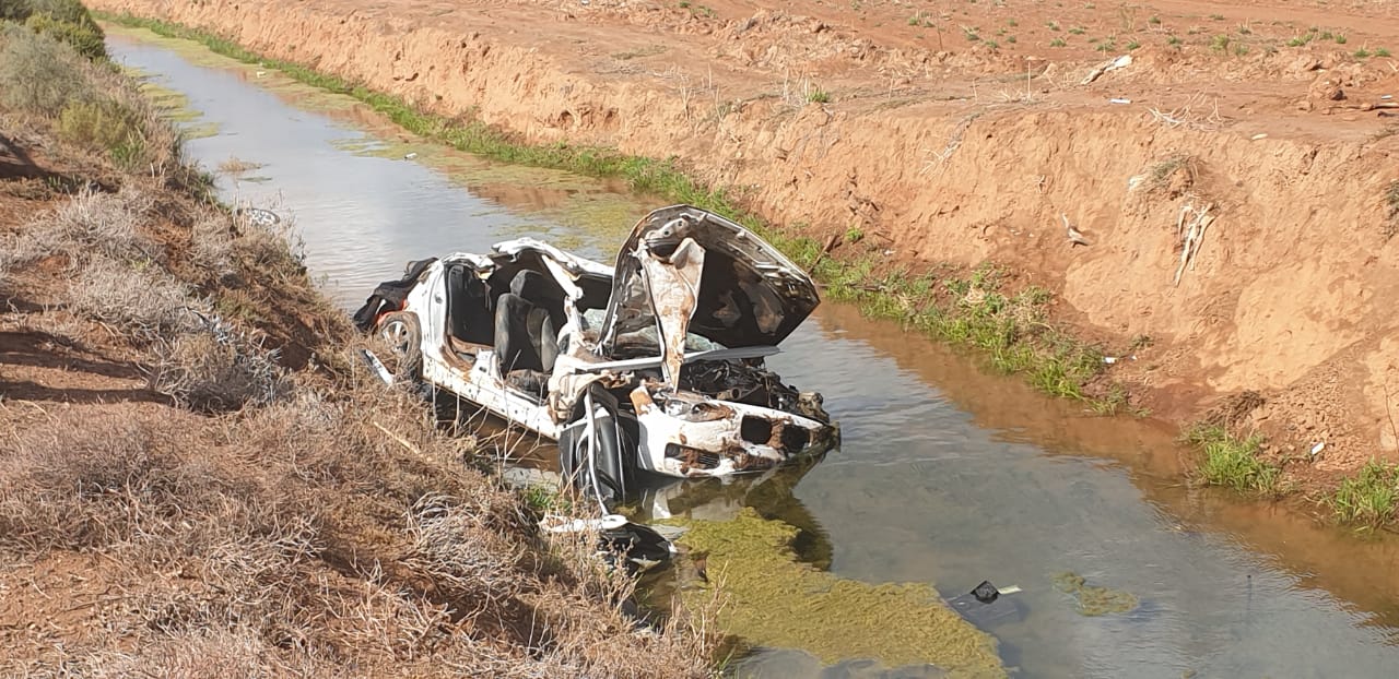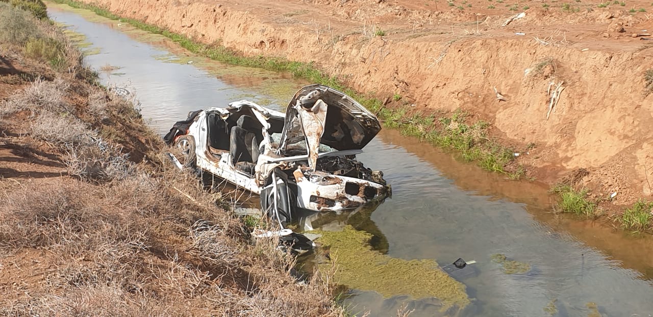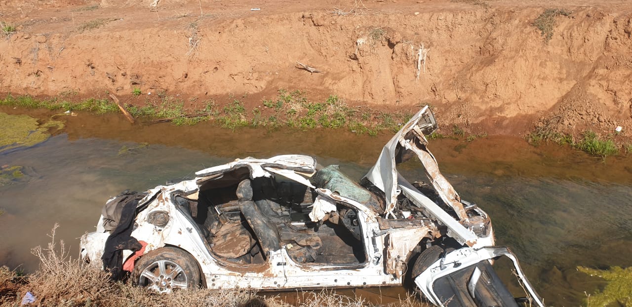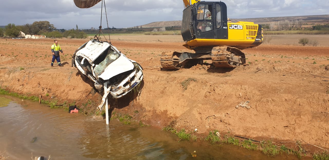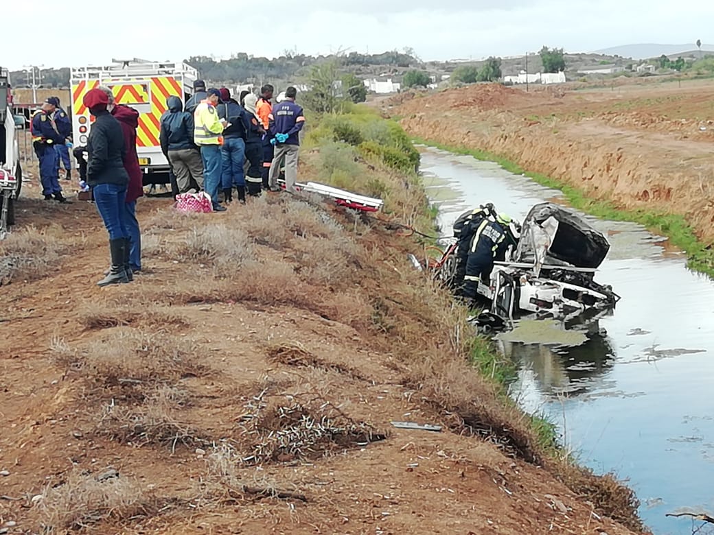 Die liggaam van 'n jong vrou van Oudtshoorn is vanoggend omstreeks 09:00 uit die wrak van 'n BMW gesny. Die botsing het in die vroeë oggendure gebeur toe die BMW op die grottepad die pad verlaat en in 'n waterkanaal te lande gekom het.