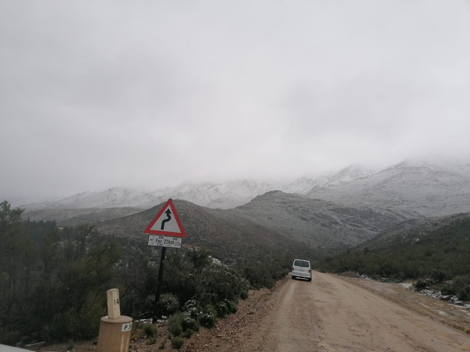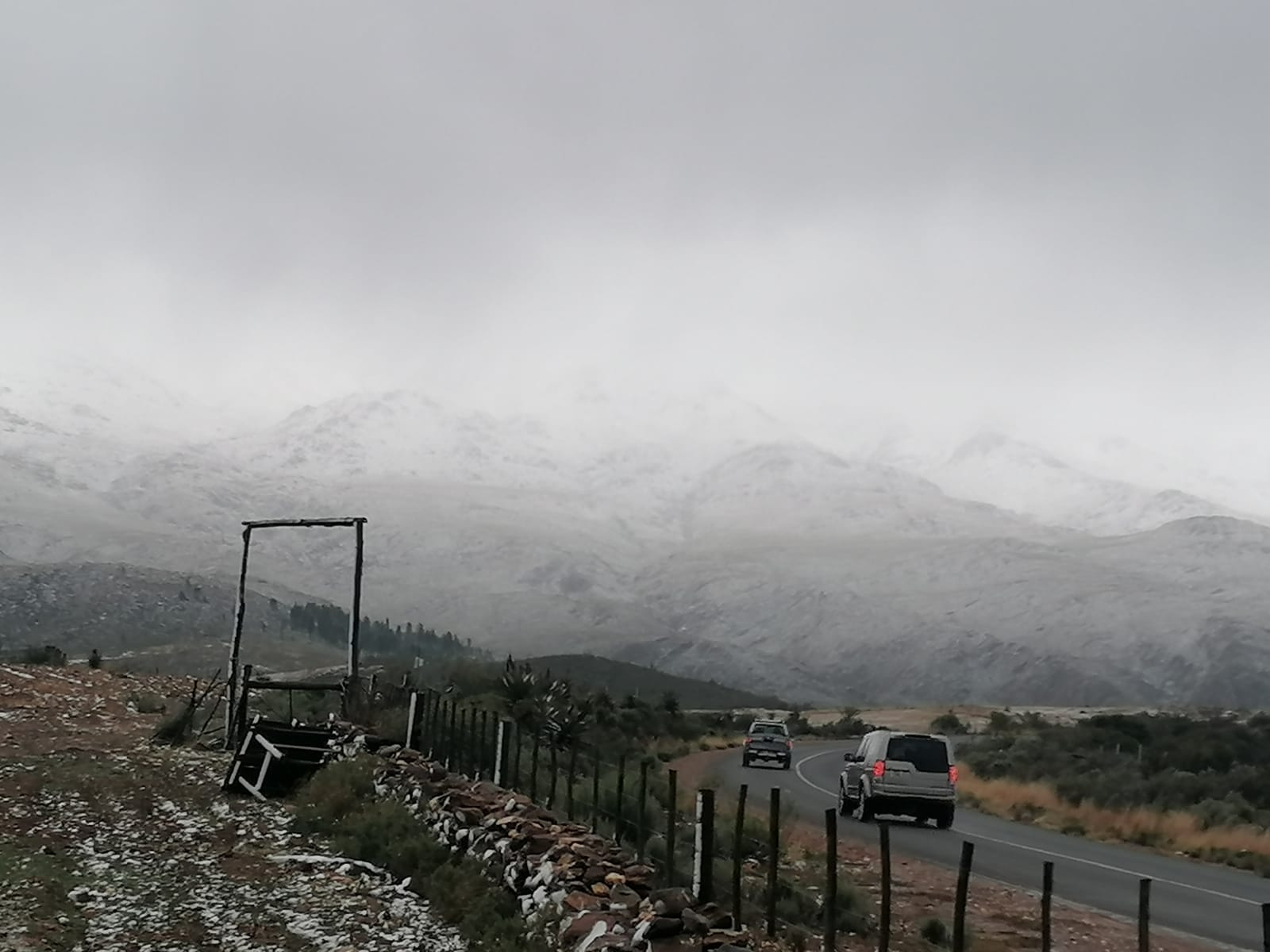 Tuinroete Distrik-inwoners is besig om op die Swartbergpas toe te sak om sneeu te kyk.