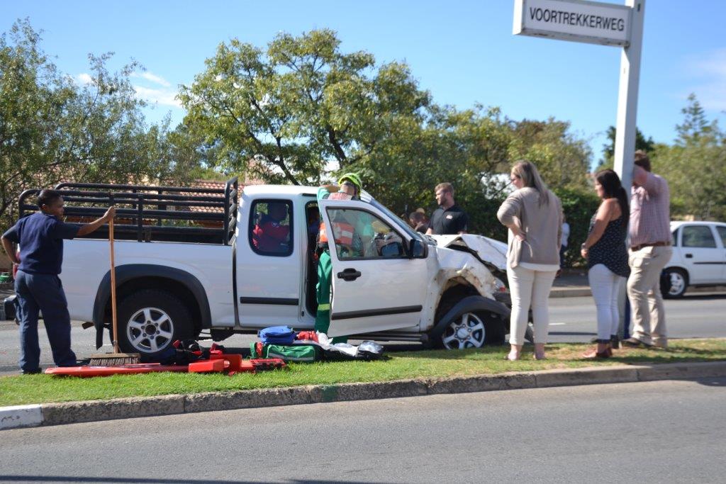 Een persoon is vanmiddag met 'n nekbesering na die hospitaal geneem en 'n ander is lig beseer na 'n botsing tussen 'n taxi en 'n bakkie by die kruising van Oxfordstraat en Voortrekkerweg.