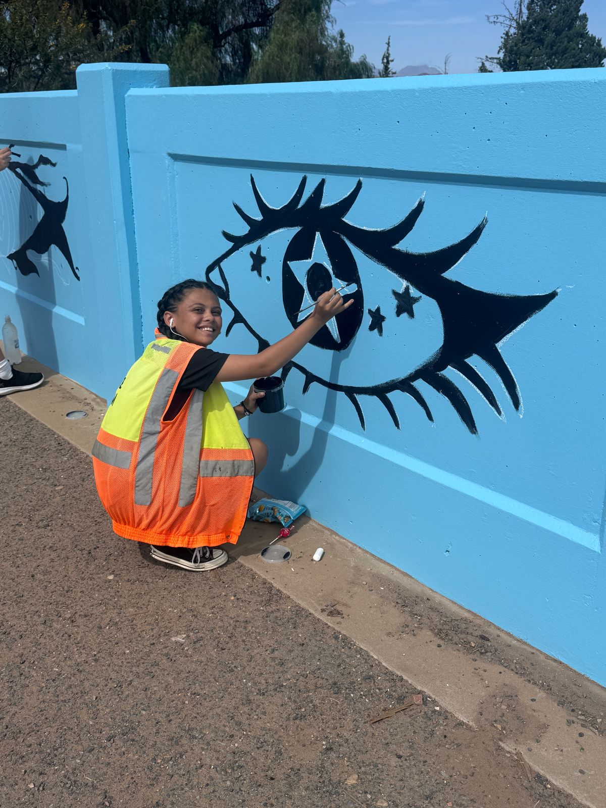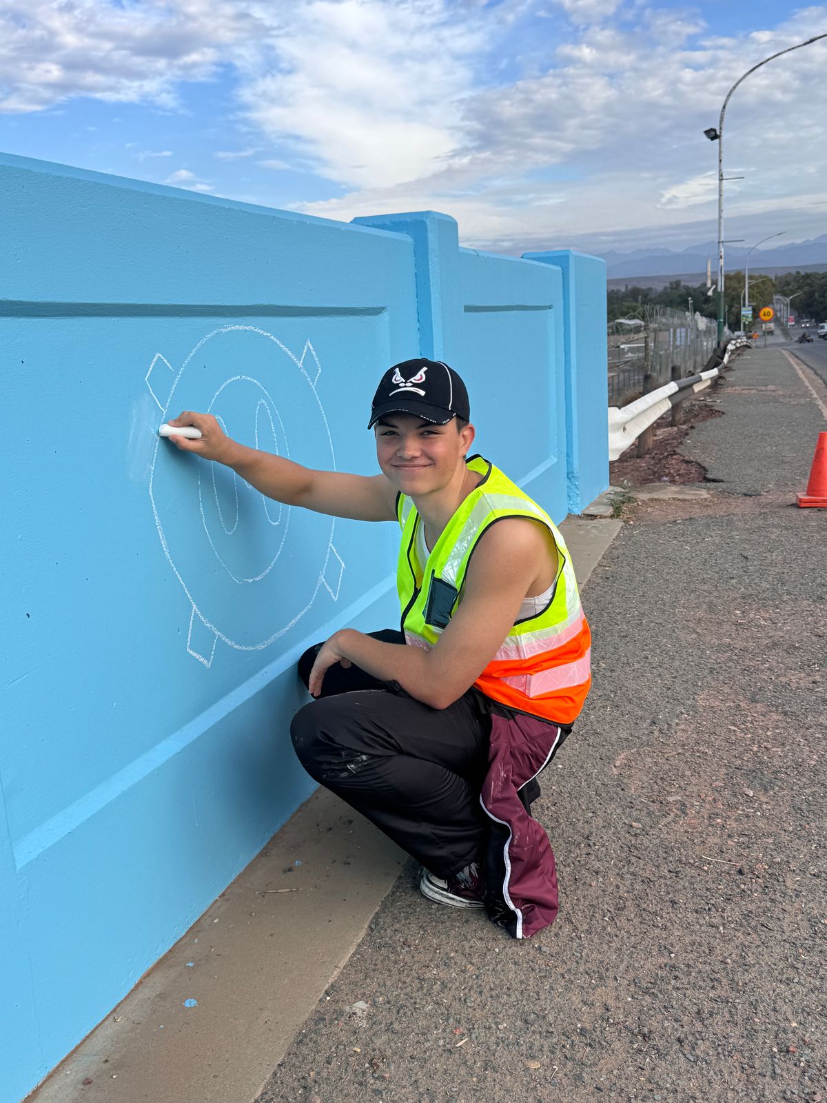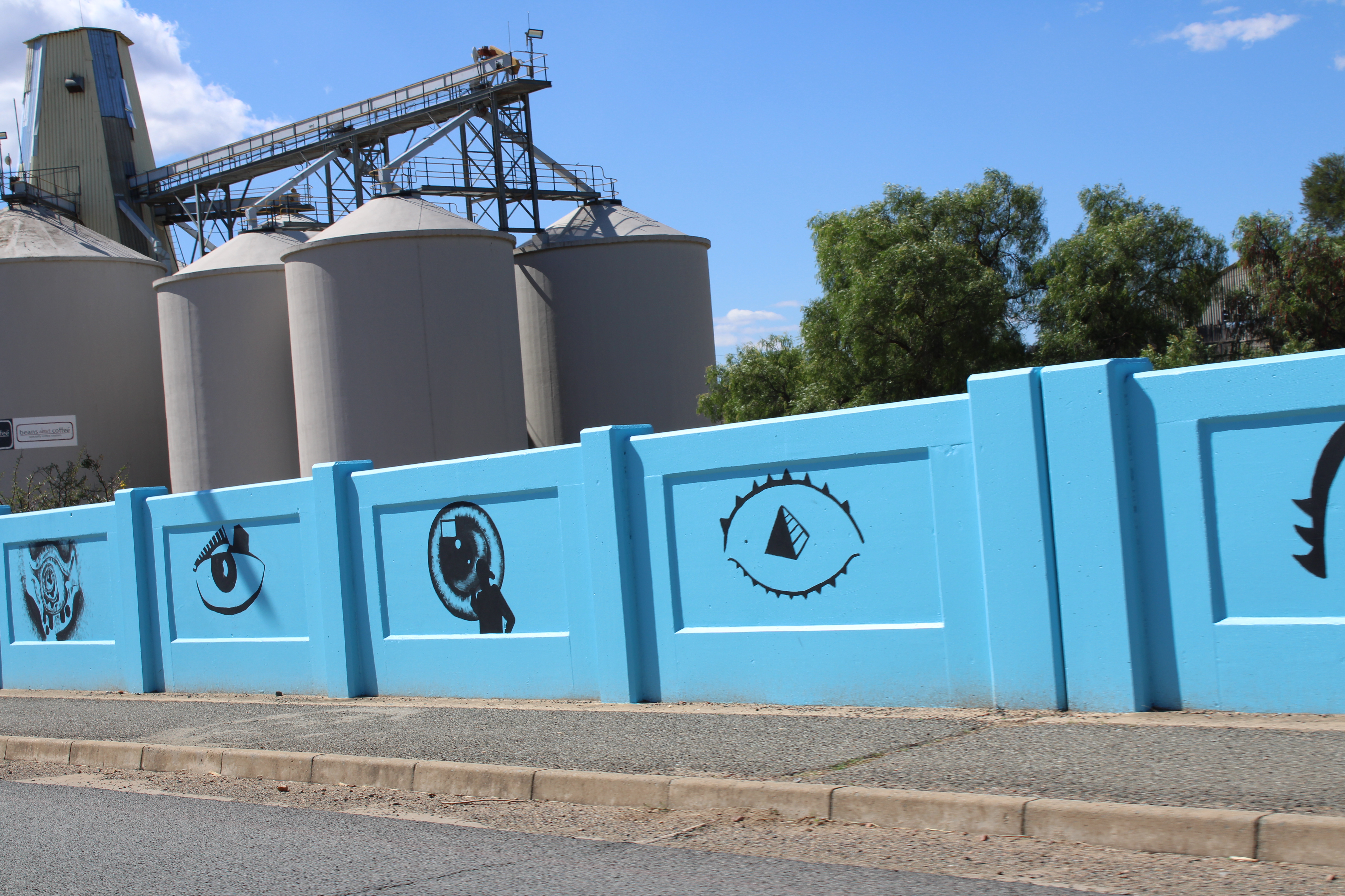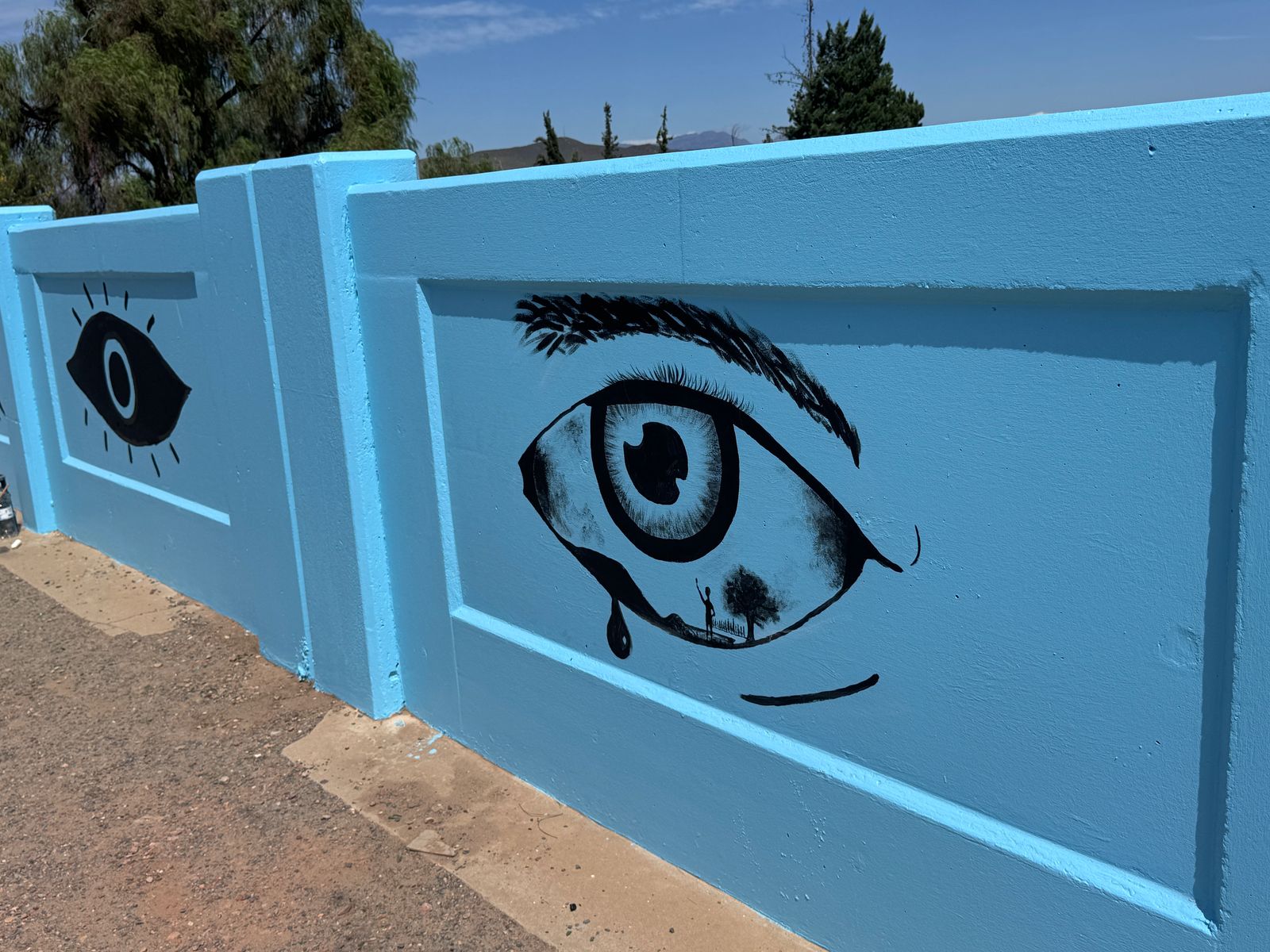 Die brug vanaf George na Oudtshoorn in Langenhovenweg is omskep in ’n kleurvolle baken.Hierdie permanente plekspesifieke werk strek oor 40 m aan beide kante van die pad. Die werk is geskep deur Norman O’Flynn, in samewerking met gr. 10 tot 12-kunsleerlinge van Hoërskool Oudtshoorn.Vir hierdie projek getiteld Future Vision het O’Flynn en die tieners van Hoërskool Oudtshoorn ’n aantal oë op die brug geverf om motoriste en voetgangers te herinner dat hul oë altyd oop moet wees – om bewus te bly van hul omgewing en die landskap waardeur hulle beweeg en waarin hulle leef. Die blou mure verwys na die blou lug in Oudtshoorn, asook die blou water van die Grobbelaarsrivier wat deur die dorp kronkel.Die projek maak ook deel uit van die Diepe Grond visuele kunste program van die KKNK. Fotos: verskaf