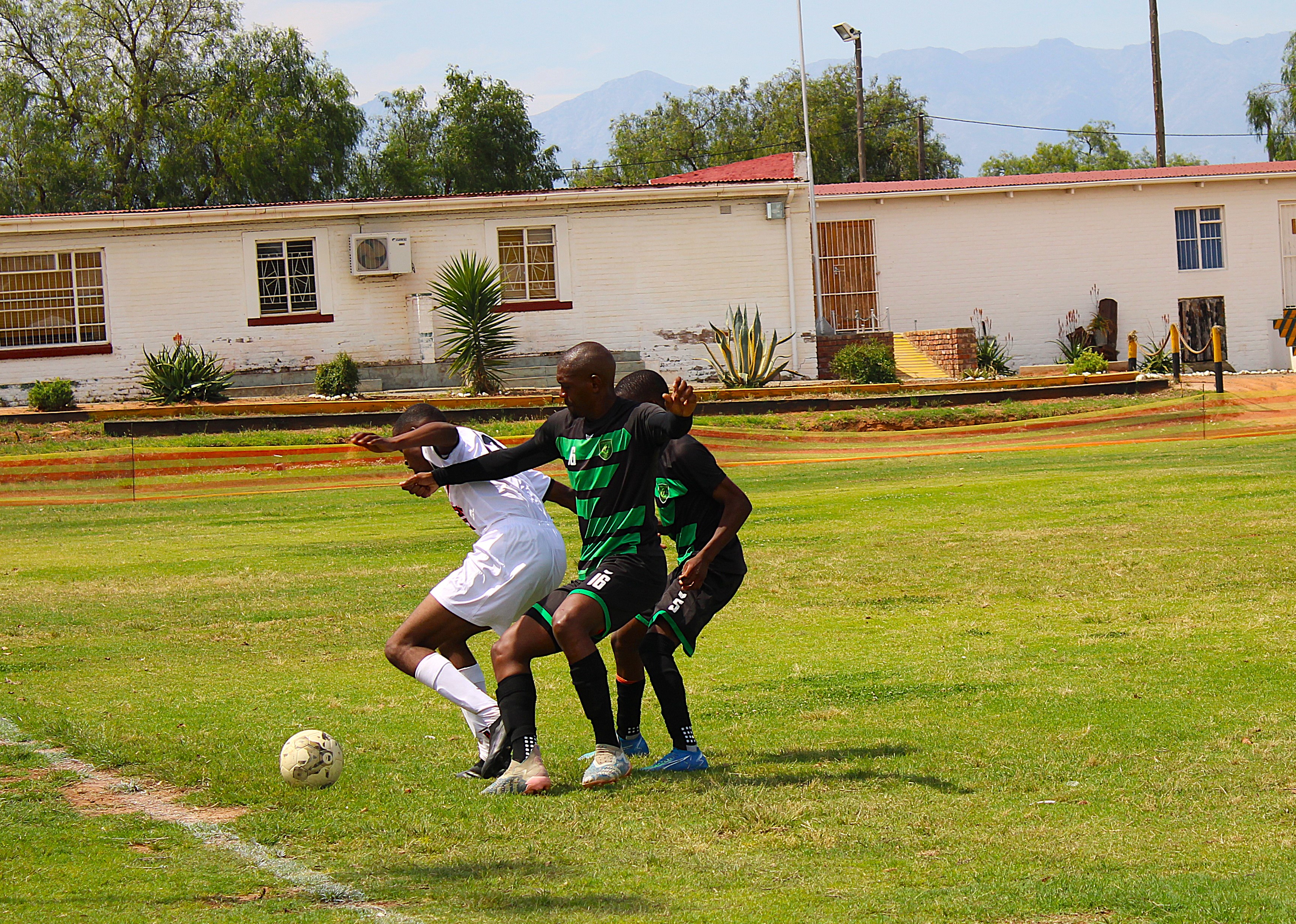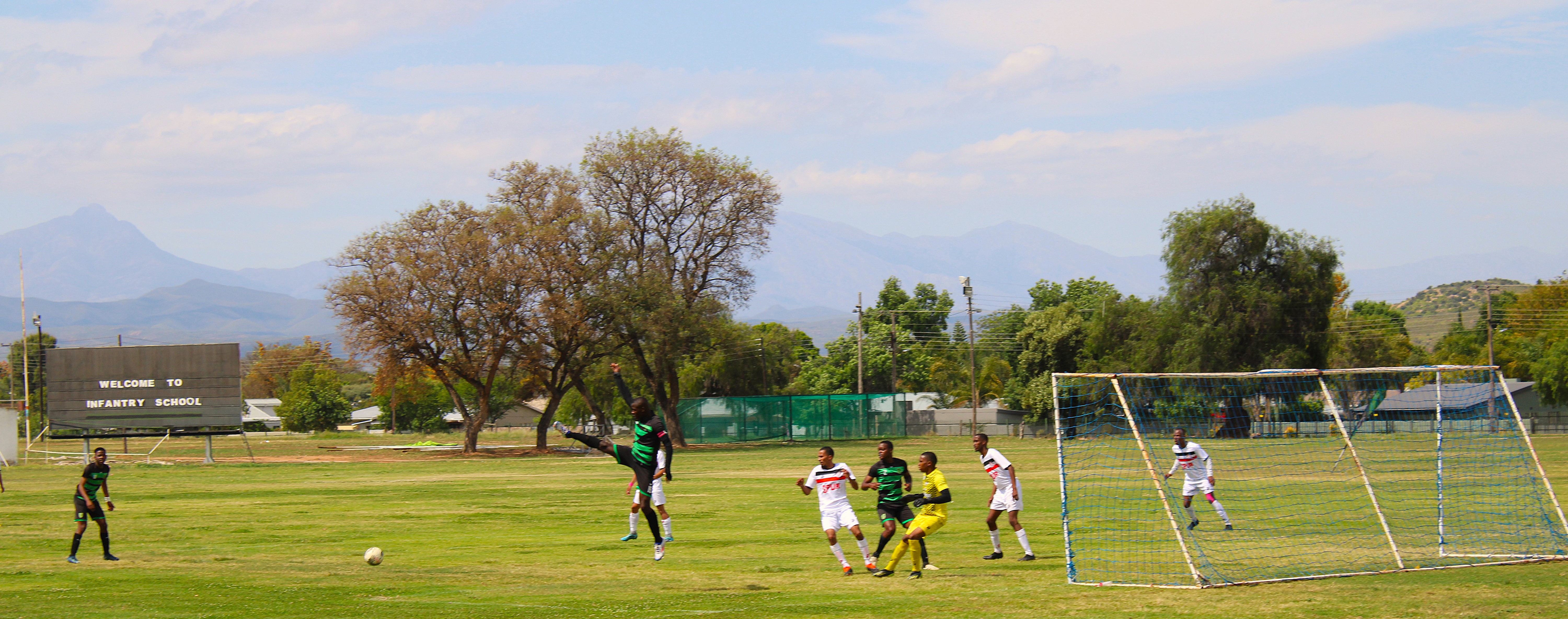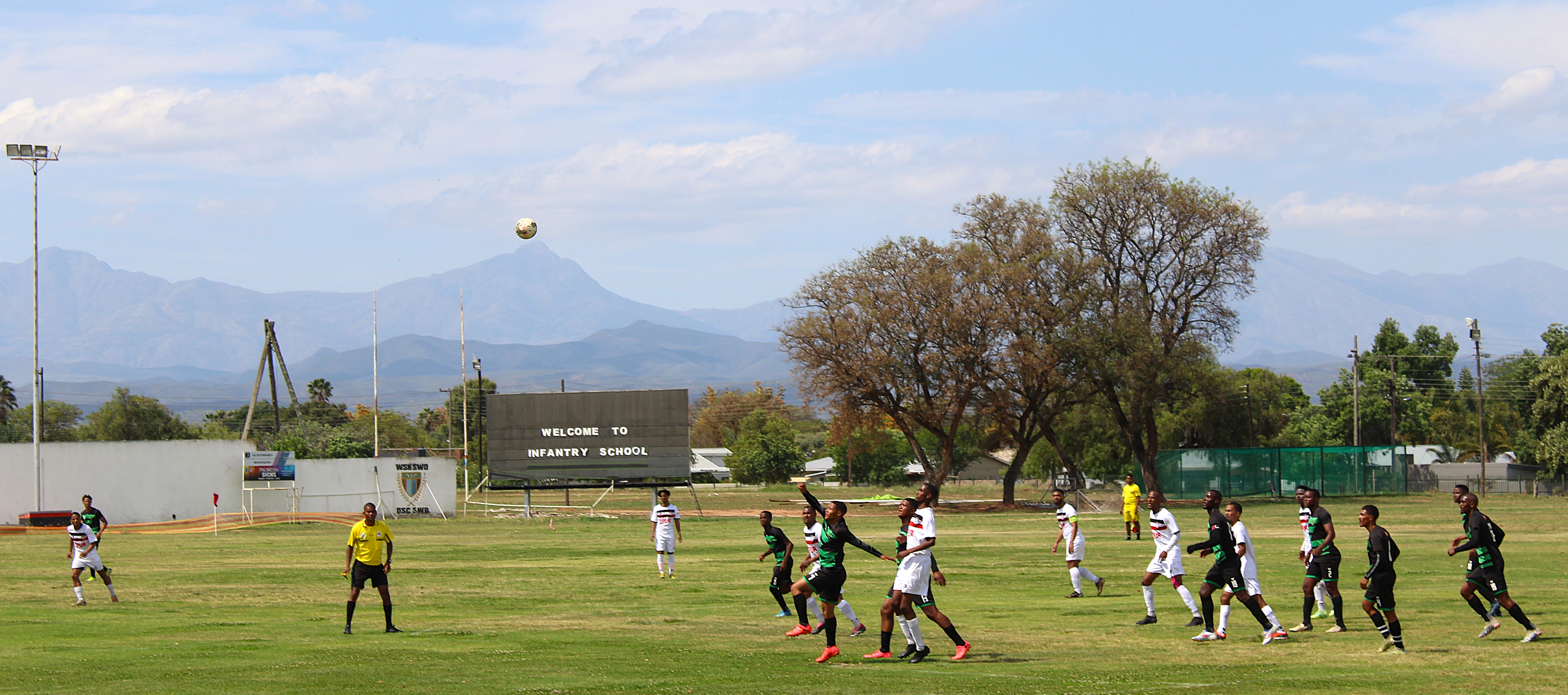 The Oudtshoorn Infantry School FC took on the Seaside Spurs from Oceanview, Cape Town in a tough match, Saturday afternoon, 2 November.The teams braved the Oudtshoorn heat with spectators cheering them on.The match ended in a draw with zero goals all.