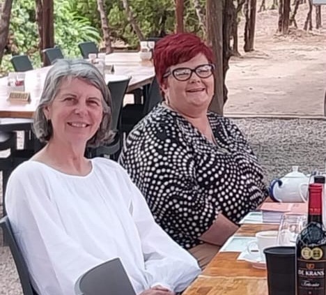 Elana Grundling (links) en Ena Barnard vertel hoe trots hulle is op wat Jan bereik het. Foto verskaf