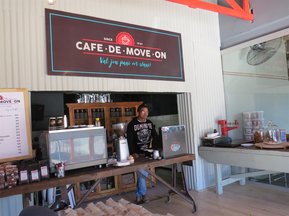 CAFE.DE.MOVE.ON, waar mense kan sit en ontspan met koffie en eetgoed uit die bakkery, het hierdie maand geopen en is reeds 'n gewilde stilhouplek.