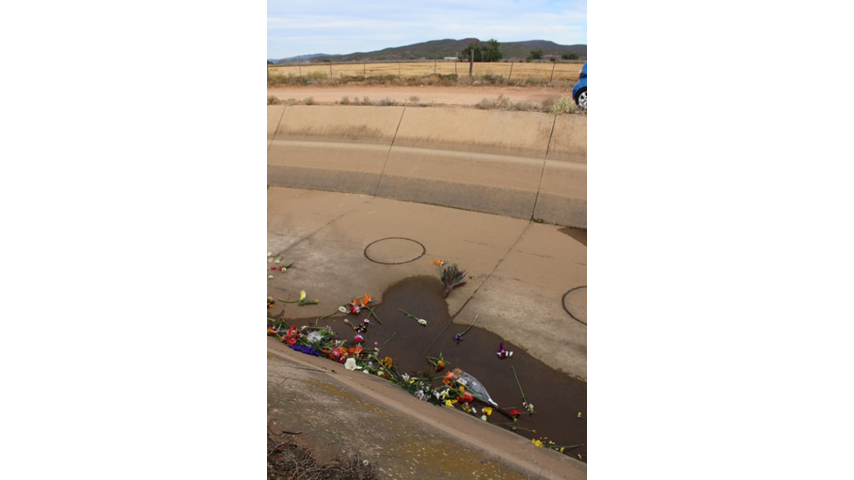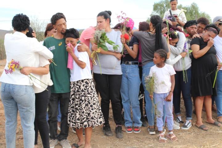 OUDTSHOORN NUUS - Kleurvolle blomme in 'n droë kanaal was die stille getuienis van familie en vriende van Janine Stander se rou en seer.