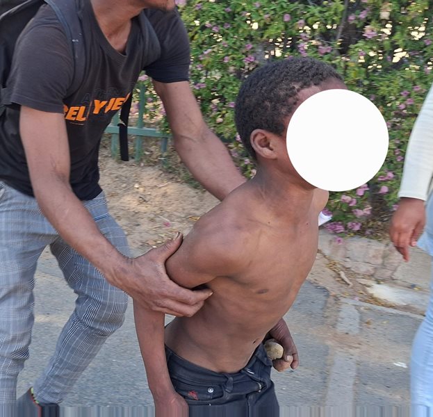 ’n Jong seun is deur ’n sekerheidswag van Checkers weggejaag. Die seun het oor die straat gevlug en op die middelmannetjie in Voortrekkerweg klippe opgetel wat hy na mense op die sypaadjie begin gooi het.