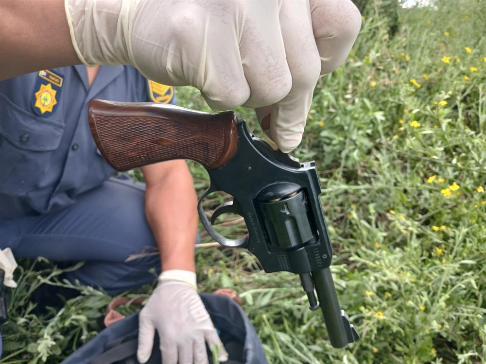 Die wapens is uit die huis se kluis gesteel. Een van die verdagtes het hulle na die plek geneem waar die wapens versteek was.