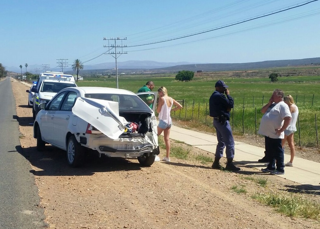 OUDTSHOORN NUUSFLITS - Twee buitelandse toeriste is ongedeerd nadat hulle Sondag sowat 6 km buite Oudtshoorn in 'n botsing betrokke was.