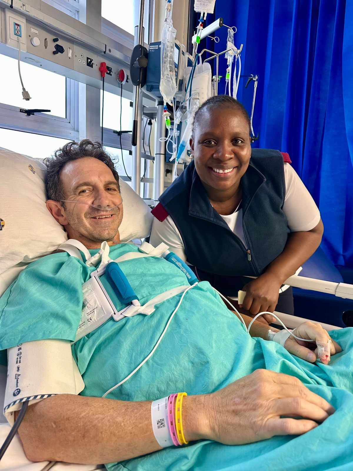 Three weeks and a frightening episode of unstable angina chest pain later, Sean was transferred to Netcare Krugersdorp Hospital’s well-known cardiac intensive care unit (ICU) on the evening of Friday, 26 September, for the necessary preparation for his operation under the care of cardiologist Professor Nqoba Tsabedze and Dr Zigiriadis.