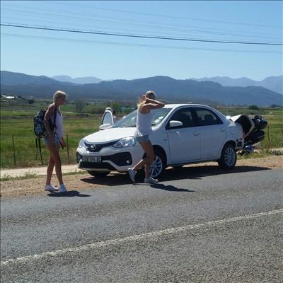 OUDTSHOORN NUUSFLITS - Twee buitelandse toeriste is ongedeerd nadat hulle Sondag sowat 6 km buite Oudtshoorn in 'n botsing betrokke was.