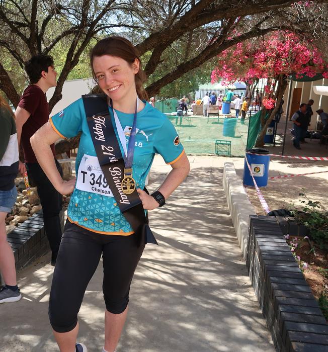 OUDTSHOORN NUUS - Chelsea van Coller, student van die Universiteit van Kaapstad, het hierdie besondere gebeurtenis baie goed beplan toe sy vroeër die jaar hoor dat die Meiringspoort-halfmarathon vanjaar saam met haar 21ste verjaarsdag val.