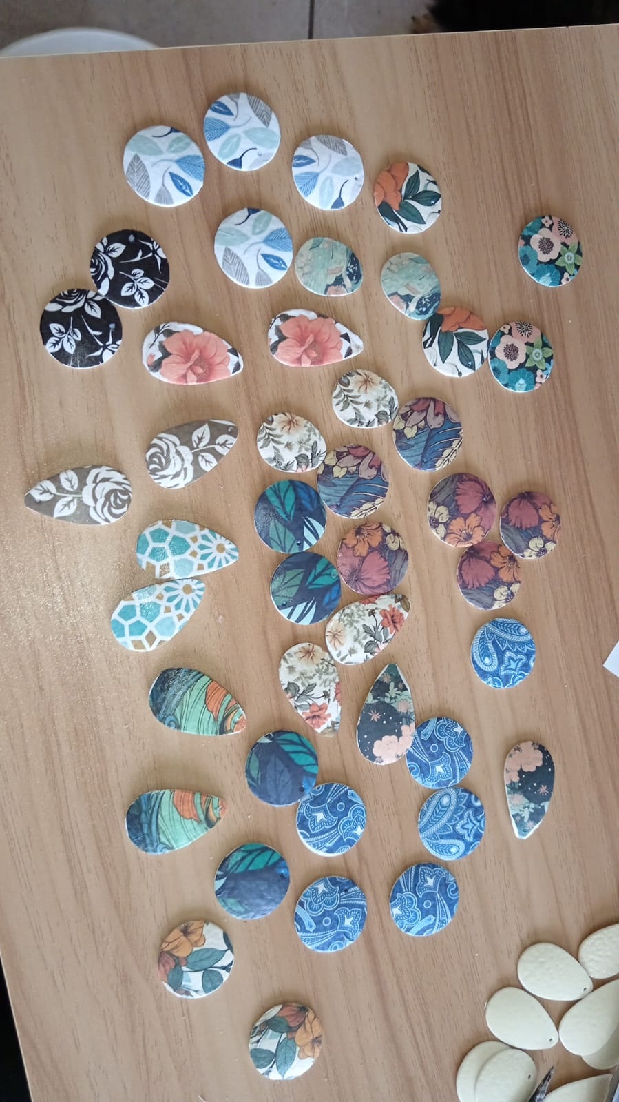 "Ons het mense wat die vorms vir die oorbel met 'n potlood op die eierdop trek. Dan is daar mense wat die vorm met tangetjies uitknip. Die geknipte doppe gaan dan aan die span wat die afskuur tot al die kante mooi gelyk en glad is. Van daar af word die gaatjies met 'n fyn handboortjie geboor. Die oorbelle word daarna versier en aanmekaargesit, voordat dit verpak word."