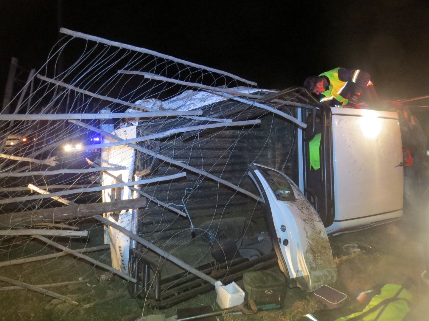Nooddienswerkers het die bakkie se deure en dak met meganiese toerusting afgesny om by hom te kom. Hy was egter reeds dood toe hulle hom uit die wrak haal.