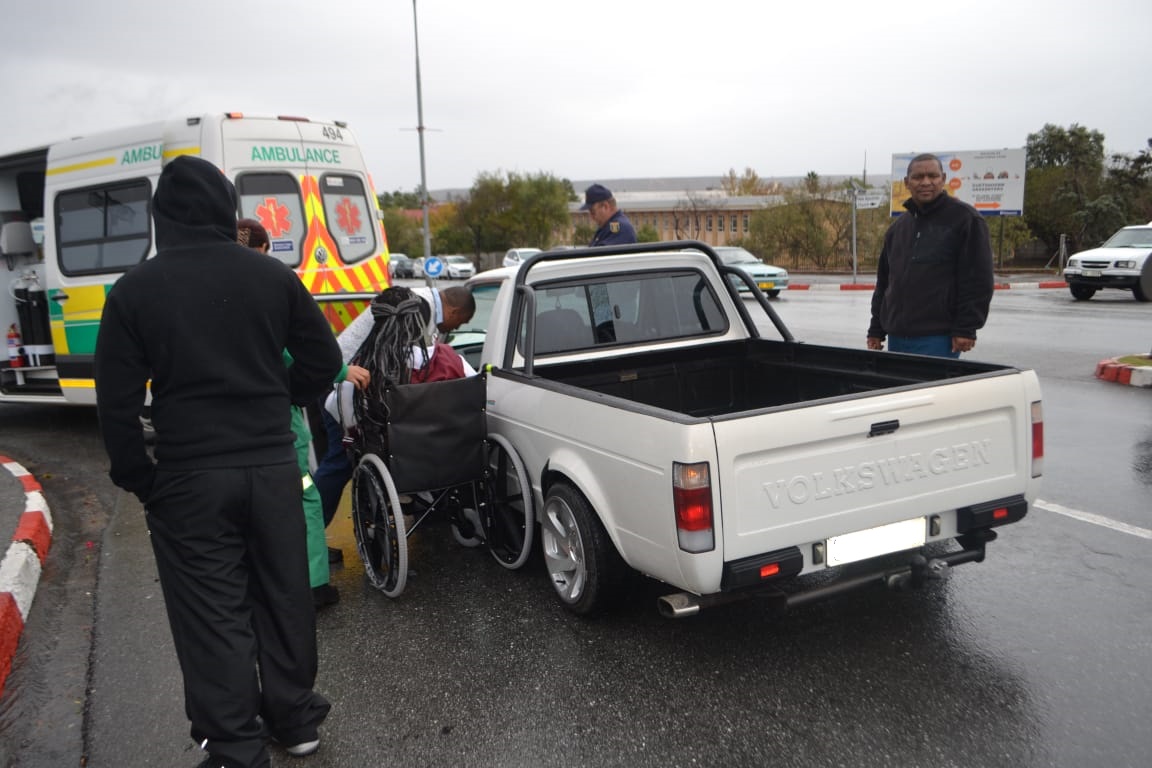 Paramedici het die bestuurder en passasier in die bakkie vir nek- en gesigbeserings behandel.