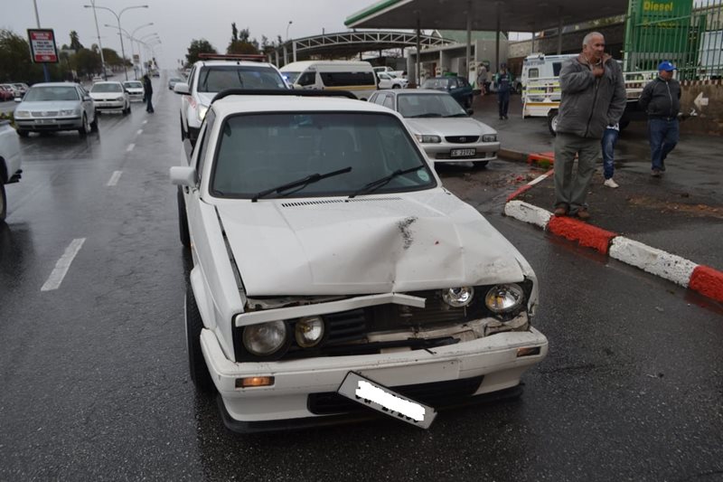 Volgens inligting wat op die toneel verkry is, het 'n Chev by die vulstasie uitgery en die Volkwagen-bakkie het na bewering agterin hom vasgery.