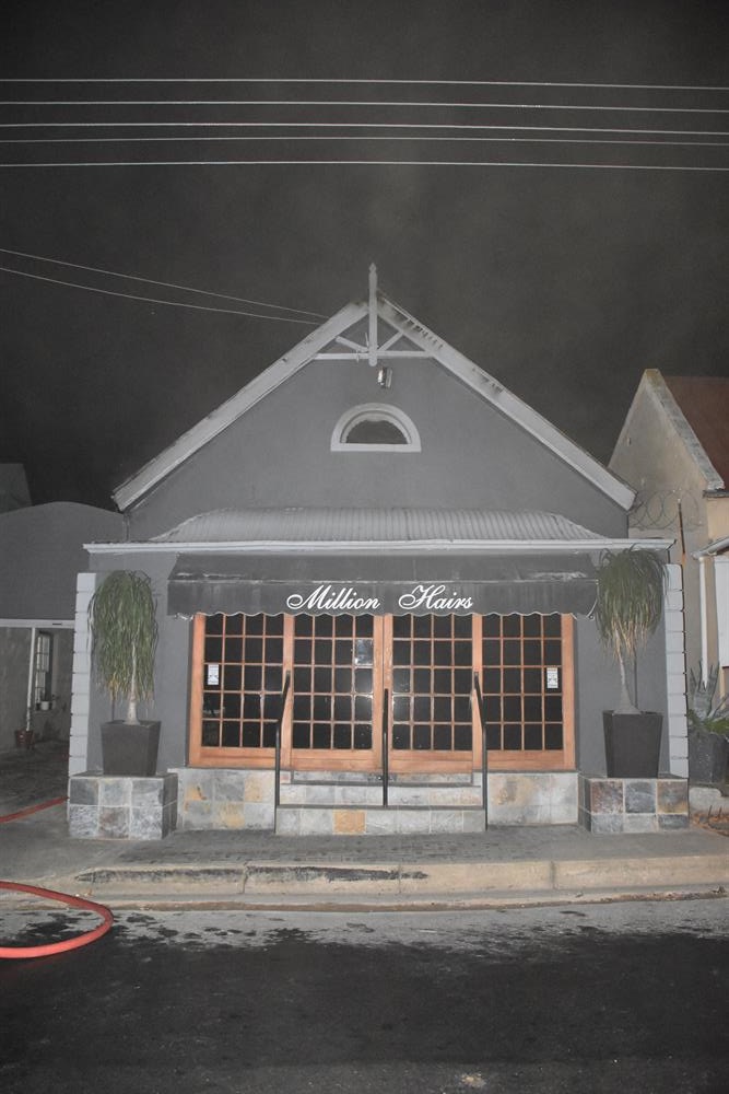 Die salon Sondagaand terwyl die brandweer spook om die brand te blus. Foto's: Liezl van Niekerk