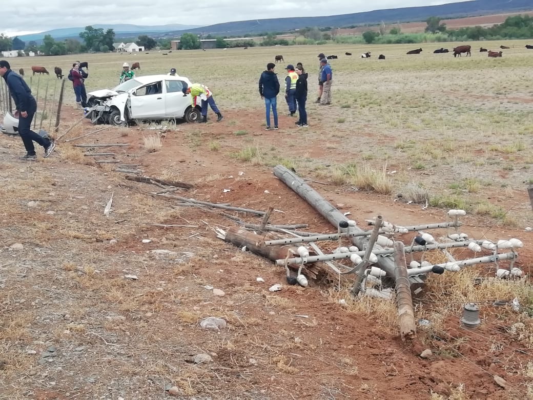 OUDTSHOORN NUUS EN VIDEO - In die derde botsing van die dag het 'n Datsun GO om ongeveer 12:30 net buite Oudtshoorn 'n kragpaal getref en gerol.