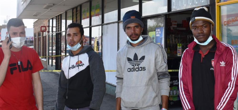 OUDTSHOORN NUUS EN VIDEO - Vyf verdagtes is Maandagmiddag, minute nadat hulle na bewering 'n kafee in Voortrekkerweg beroof het, in hegtenis geneem. Halaal Cafe is omstreeks 13:30 beroof, maar die polisie se blitsvinnige optrede het tot vinnige arrestasies gelei.