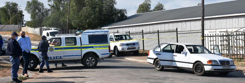 Die toneel in die industriële gebied waar die Mercedes deur die polisie vasgetrek is.