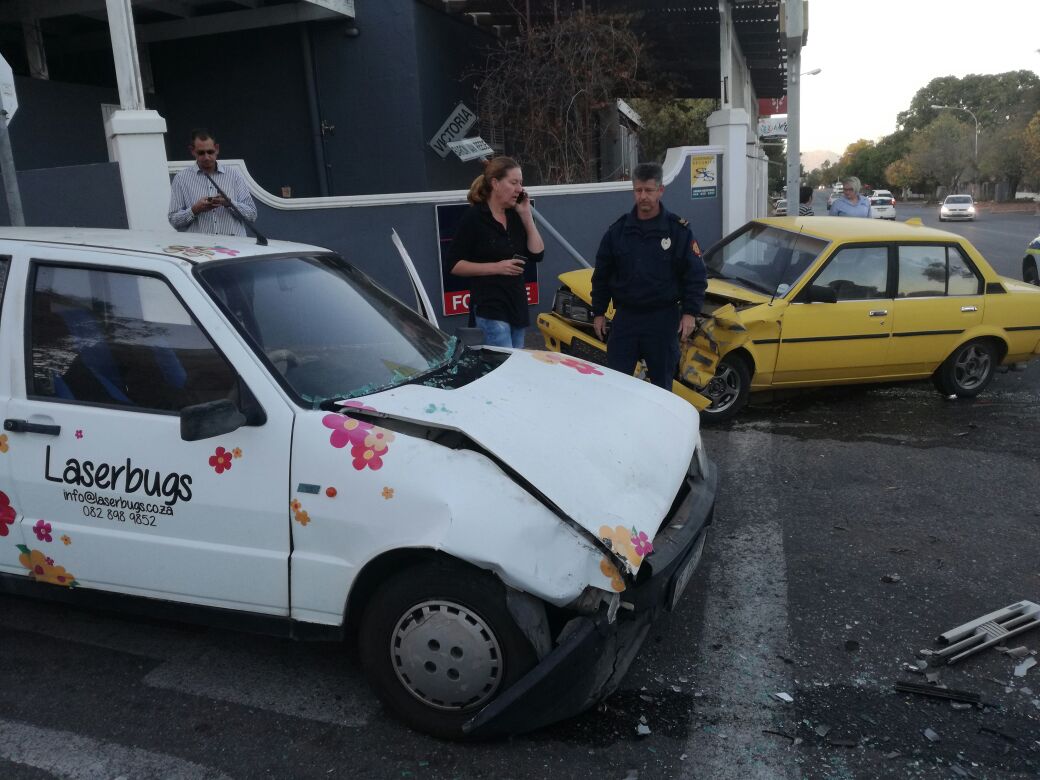 Die botsing het plaasgevind toe 'n wit Opel Astra uit Baron van Reedestraat regs in Victoriastraat ingedraai het.