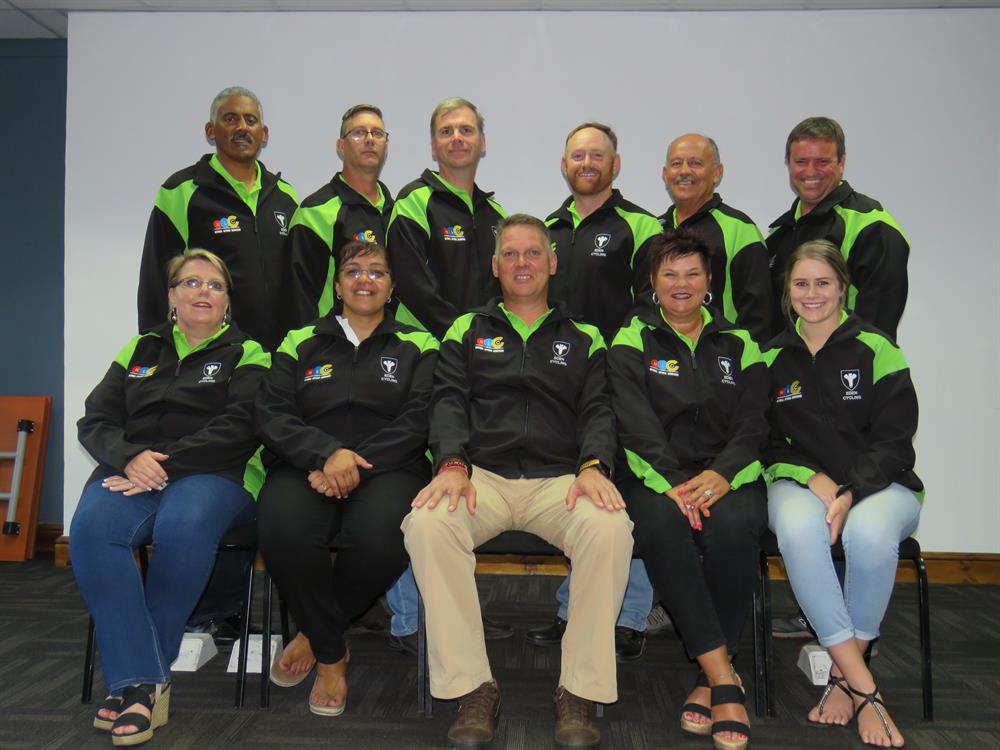 Eden fietsry se nuutverkoese bestuur is voor van links, Stephanie Botha (gesteremde ryers verteenwoordiger), Lee Aries (sekretaris), Corné Bence (president), Karin Bence (vroue verteenwoordiger) en Jessica Gerber (ryer verteenwoordiger). Agter: Daclon Aries (transformasie en ontwikkeling), Corne Botha (bergfietsry voorsitter), Louis Visser (media skakel), Jade Gerber (baanfietsry voorsitter), Essie Esterhuizen (rekreasie) en Frederick Botha (tesourier). Afwesig: Annemie Koen (padfietsry voorsitter)
