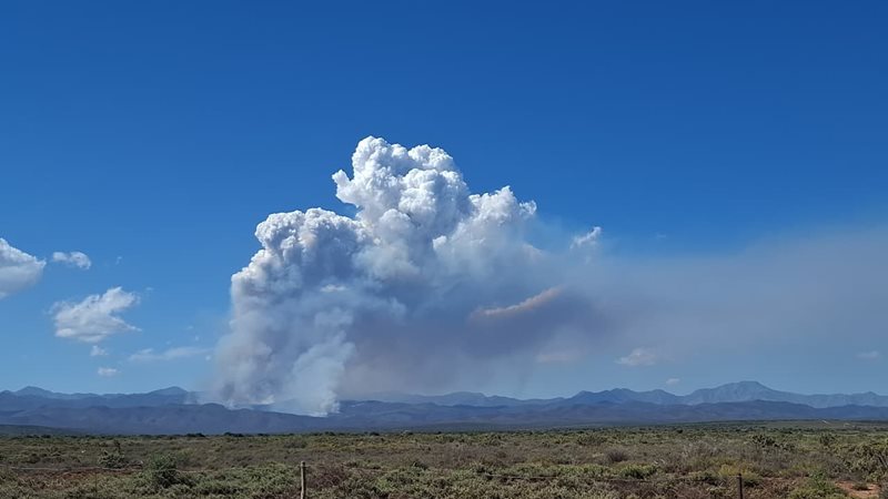 OUDTSHOORN NEWS : A fire broke out earlier today in the mountainous area north-east of Oudtshoorn and, driven by strong south-easterly winds, rapidly developed into a wild and fast-spreading fire.