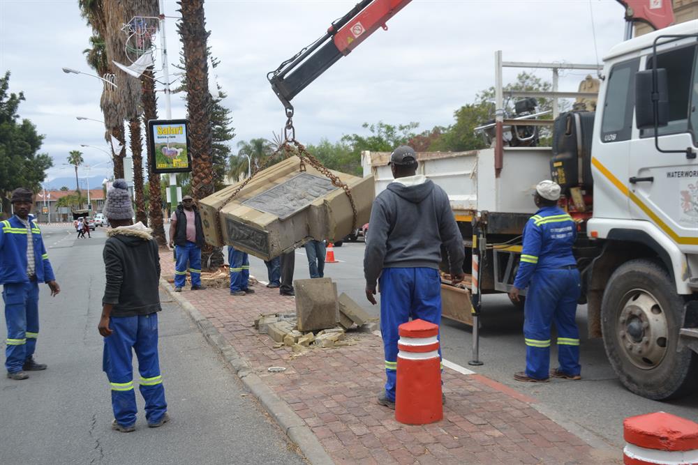 OUDTSHOORN NUUS EN VIDEO - Die gedenksteen wat reeds 30 jaar op die middelmannetjie in Baron van Reedestraat staan, is Dinsdagoggend tydelik deur die munisipaliteit verwyder na dit vermoedelik deur 'n swaar voertuig gestamp is.