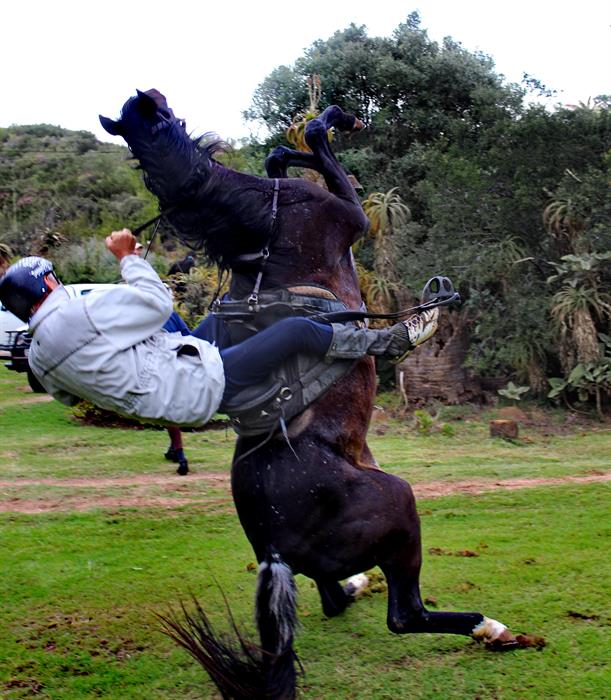 Vlok vertel dat die ruiters gereed gemaak het vir hulle rit, toe dr. Loubser se perd ewe skielik op sy agterpote gestaan en agteroor, bo-op Loubser geval het. Loubser het gekreun, maar kon nie op nie omdat die perd hom vasgelê het. Die perd het self ook gesukkel om teen die skuinste op te kom en het nog 'n keer oor hom gerol. Daarna het Loubser doodstil gelê. Van die ruiters het die perd gevang en gekalmeer.