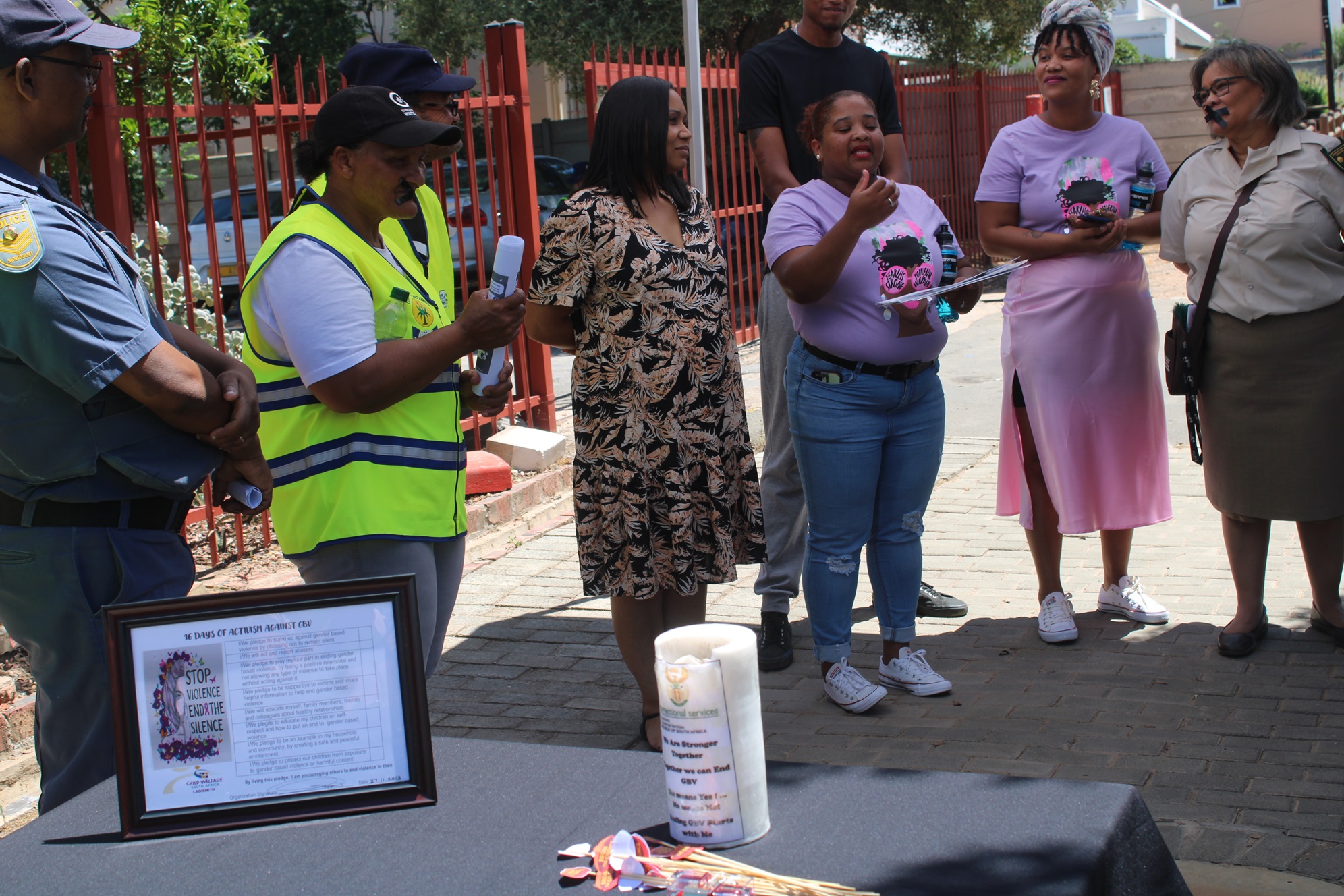 Die departement korrektiewe dienste, departement sosiale ontwikkeling, departement justisie, SAPD, Engedi Haven en Oasis nie-regeringsorganisasie het besluit om hul stem by die duisende instansies landwyd wat aan hierdie 16 dae van aktivisme teen geweld teen vroue en kinders deelneem, te voeg. Mans en vrouens het vroeg voor 'n plaaslike winkelgroep bymekaargekom, waar pastoor Karen Fourie, voorheen van die Evangelies Lutherse Kerk 'n sterk boodskap teen geweld teen vroue en kinders gebring het.