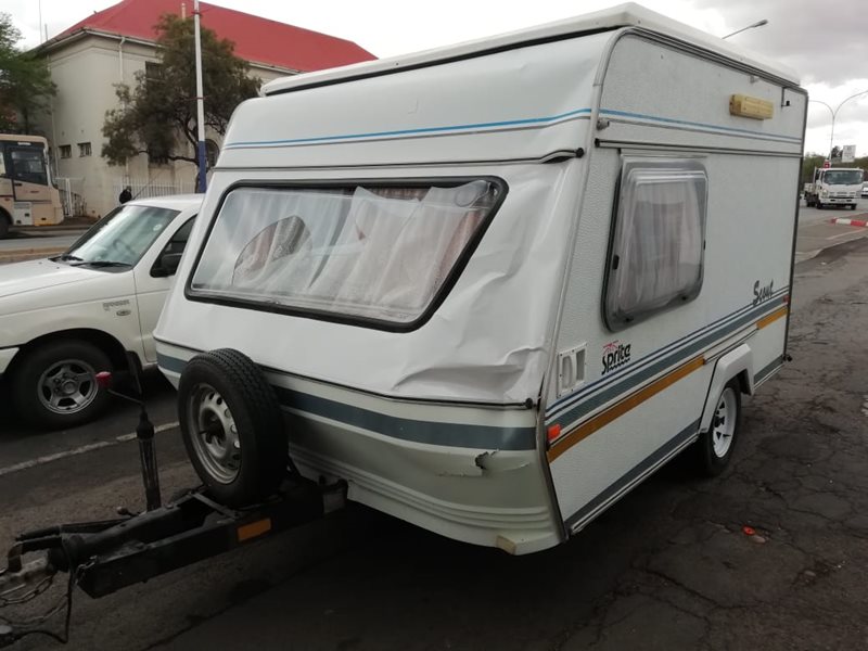 Hy het tussen die motor en karavaan ingestap en is deur die karavaan getref. Die motor het gelukkig nie vinnig gery nie.