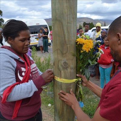 OUDTSHOORN NUUS - Vriende en familie van Francois Botha en Albert Jacobs, twee van die persone wat die afgelope naweek in 'n ongeluk by die Dysselsdorp-kruising dood is, het gister 'n kransleggingsdiens by die toneel gehad.