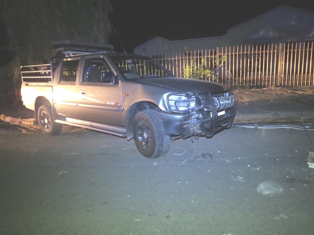 Dit blyk dat 'n patrollievoertuig die bakkie opgemerk het en dat die dief toe weggejaag het. Hy het homself misgis toe hy uit Rademeyerstraat in Jan van Riebeeckstraat indraai en het 'n lamppaal morsaf gery. Hy het daarna op die vlug geslaan.