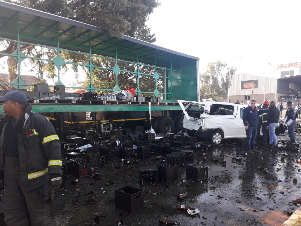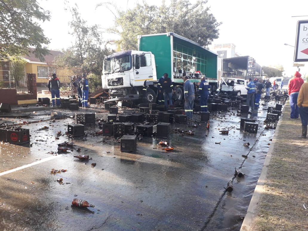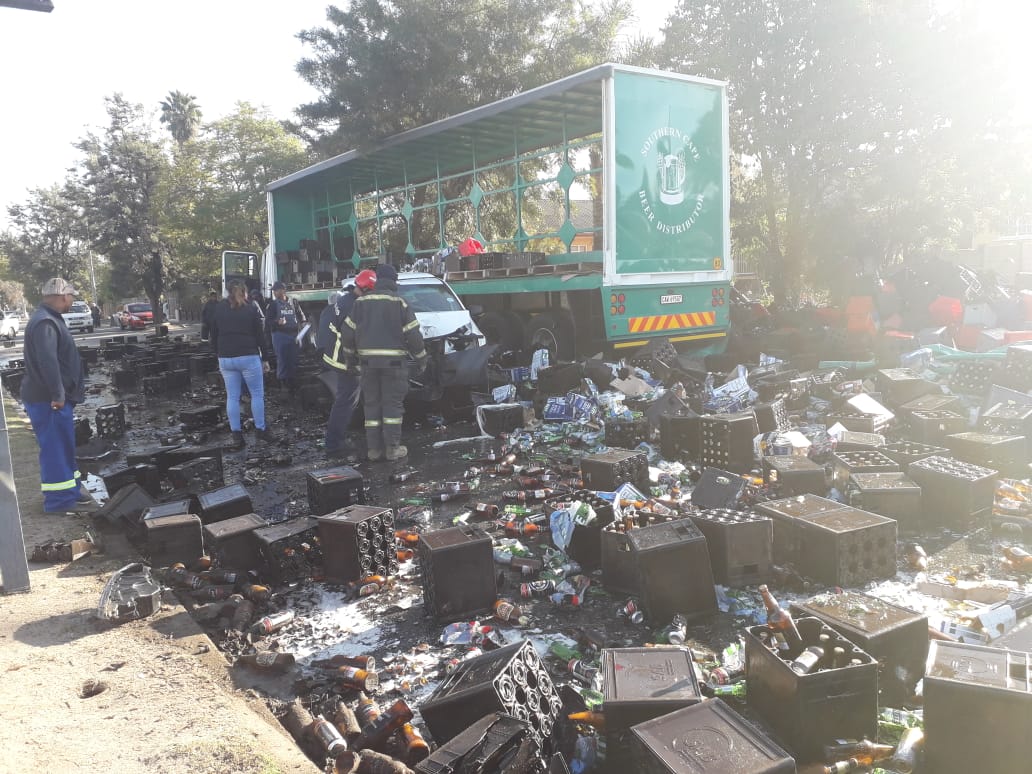OUDTSHOORN NUUS EN VIDEO - 'n Vragmotor wat bier vervoer en 'n bakkie was kort voor 09:00 vanoggend in 'n botsing in Langenhovenweg betrokke.