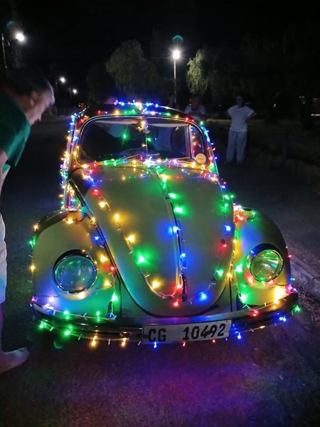 Hy en haar ma, Maria Nel, het die Beetle met kersliggies versier en Kersaand deur die dorp se strate gery. “Landi sou dit gelove het,” het die familie gesê.