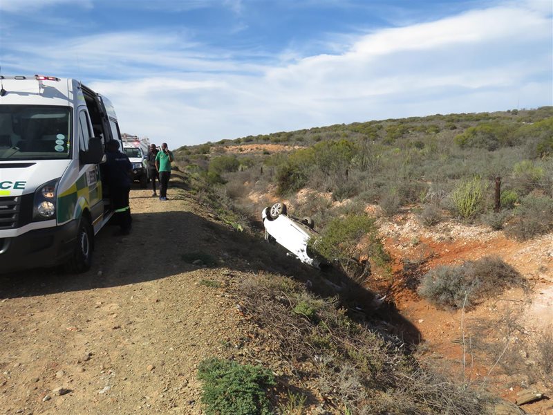 OUDTSHOORN NUUS EN VIDEO - Twee persone is per ambulans na die George-hospitaal geneem na hul motor ongeveer 20 kilometer vanaf Oudtshoorn op die George-pad gerol het.