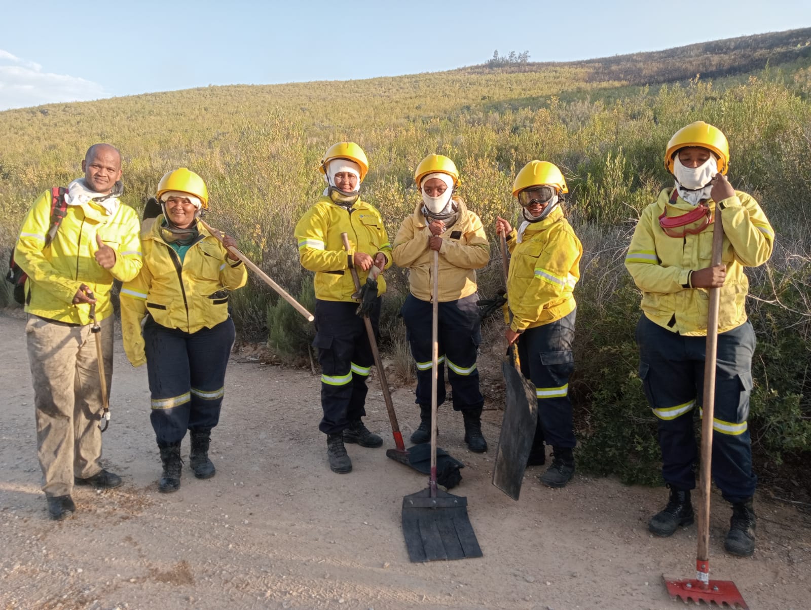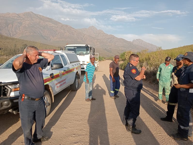 Branbestryders van Oudtshoorn, Tuinroete-distriksmunisipaliteit en Cape Nature se Working-on-Fire is ontplooi.