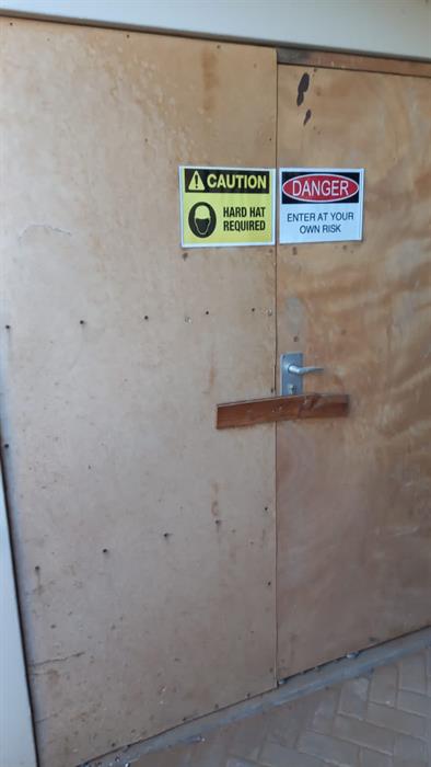 "Dit is net vir die deel van die gebou waar strukturele probleme is. Dié spesifieke deel is afgekordon en toegemaak sodat niemand kan seerkry nie. Die werk aan die stukkende deel van die gebou gaan begin sodra die konsultante aangestel is.