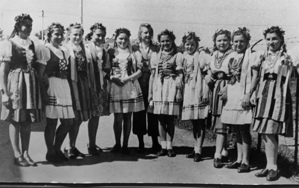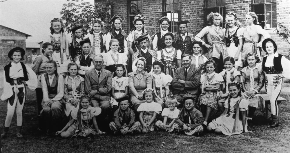 Die dogters het aan 'n sang en dans opvoering in 1944 deelgeneem en saam met C.P. Nel, stigter van die C.P. Nel-museum op die foto verskyn. Foto's C.P. Nel-museum