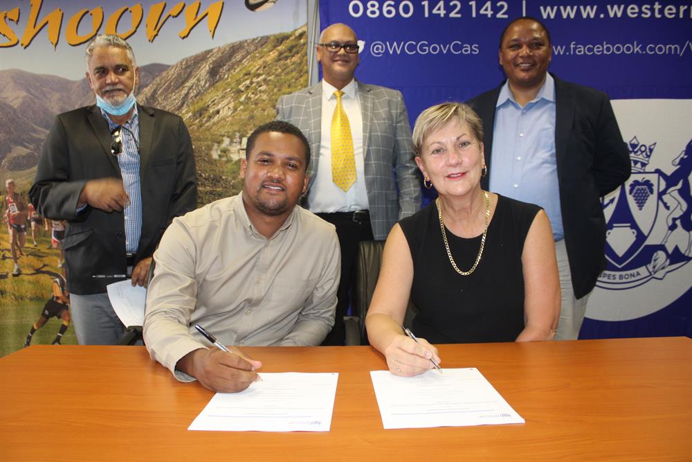 OUDTSHOORN NUUS - Die Wes-Kaapse minister van kultuursake en sport, Anroux Marais, en verskeie hooggeplaastes van haar departement, Oudtshoorn-munisipaliteit en die Eden Distrik Sportakademie (EDSA) het Dinsdag by die De Jager-sportkompleks vergader om 'n memorandum van verstandhouding te onderteken.