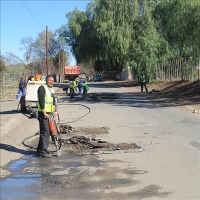 In sommige strate word skade wat deur gebarste pype aangerig is herstel en in woonbuurte word strate met swak ryvlakke herseël.