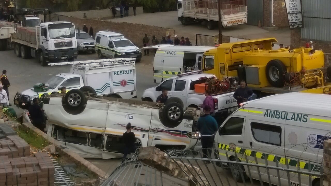 OUDTSHOORN NUUSFLITS EN VIDEO - 'n Minibustaxi het kort na 15:00 vanmiddag (Vrydag 25 Augustus) in Jonesstraat, Oudtshoorn, gerol en op sy dak te lande gekom.