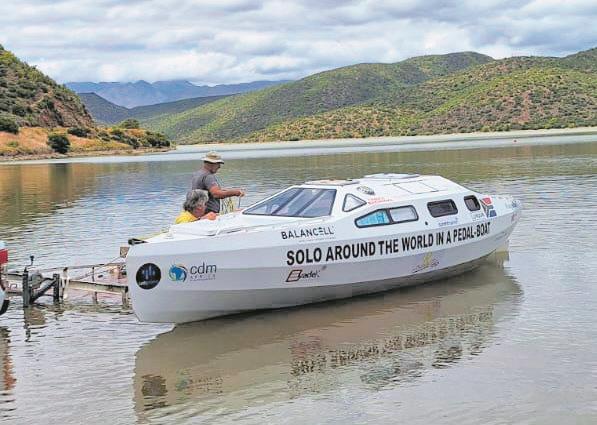 OUDTSHOORN NUUS - Neels Terblanche van Oudtshoorn is druk besig om alles in plek te kry vir sy opkomende vaart om die wêreld in sy trapboot die Vaquita II.