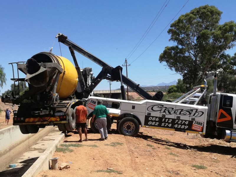 'n Herwinningsvoertuig van George het die vragmotor uit die kanaal gelig. Die vragmotor se massa is ongeveer 10 ton.