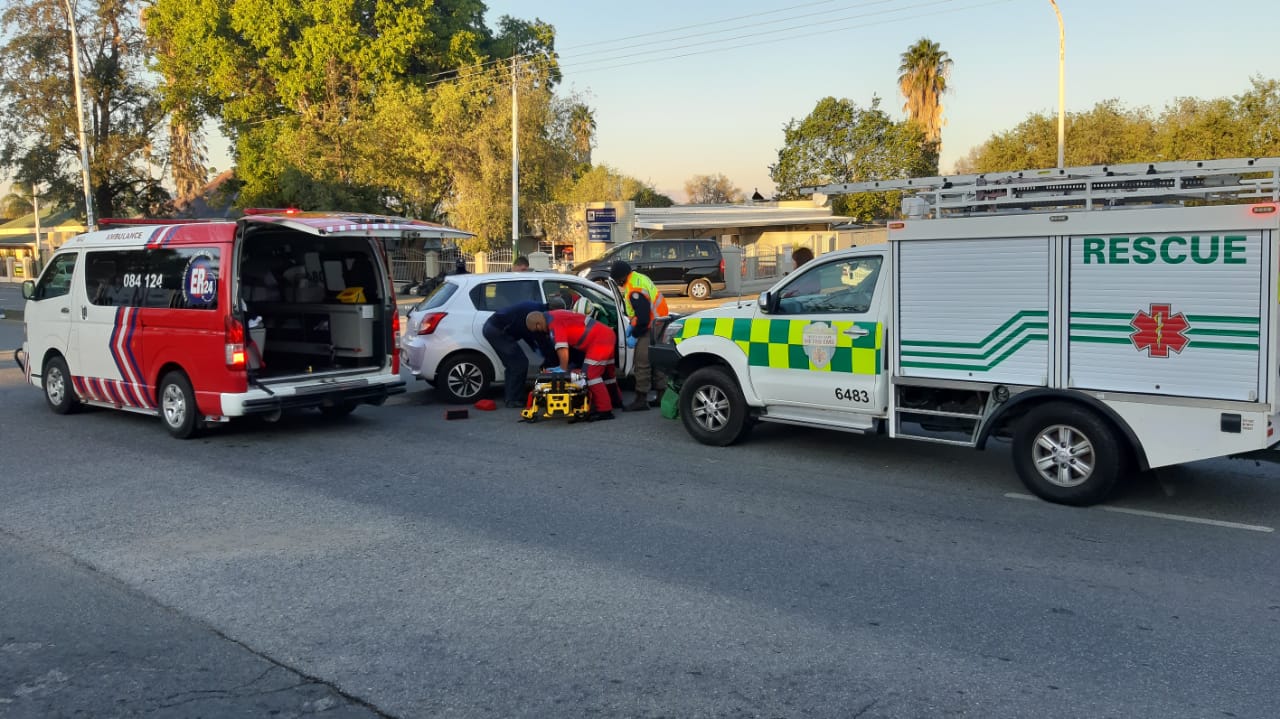 OUDTSHOORN NUUS EN VIDEO - 'n Vrou het nekbeserings opgedoen toe sy vanoggend net voor 08:00 skaars 200m van haar huis af in 'n botsing betrokke was.