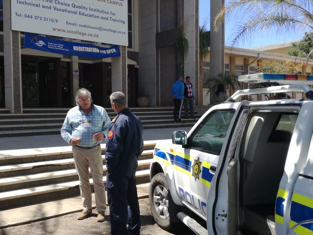 OUDTSHOORN NUUSFLITS EN VIDEO - Die polisie moes die afgelope 45 minute na vyf verskillende plekke haas om bomdreigemente op te volg.
