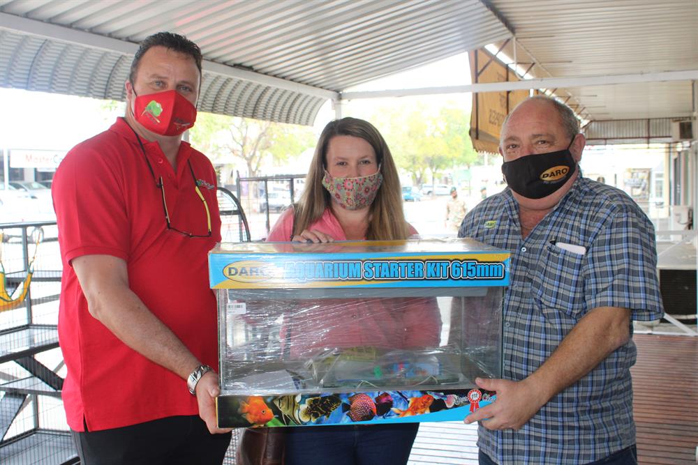 Kliënte wat die afgelope maand sedert dié winkel se opening R500 en meer gespandeer het, het in aanmerking gekom om die vistenk te wen wat deur Daro Enterprises geborg is.