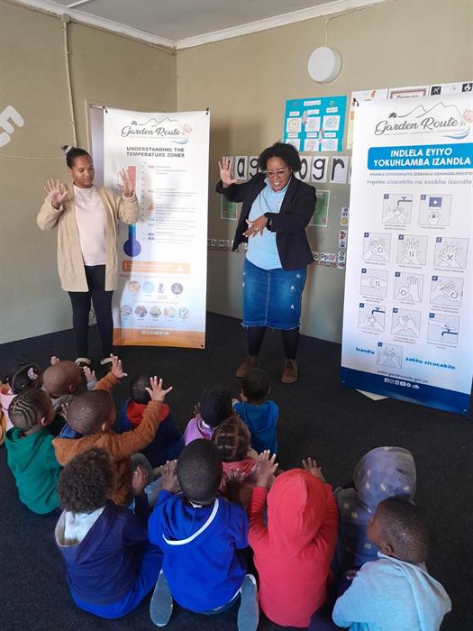 Die span het ’n speelse, maar belangrike les oor behoorlike handwastegnieke aangebied met die doel om higiëne-bewustheid te bevorder en die verspreiding van kieme onder jong leerders te voorkom.