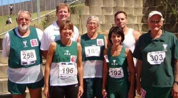 Verskeie SWD-meestersatlete het verlede Saterdag in Kaapstad aan die WP-kampioenskappe deelneem. Agter van links: Dup du Plessis, Chris Willemse, Heleen Knobel, Robert Plotz, Dawie Heunis, Guste Willemse en Toy Ungerer. Foto: verskaf.