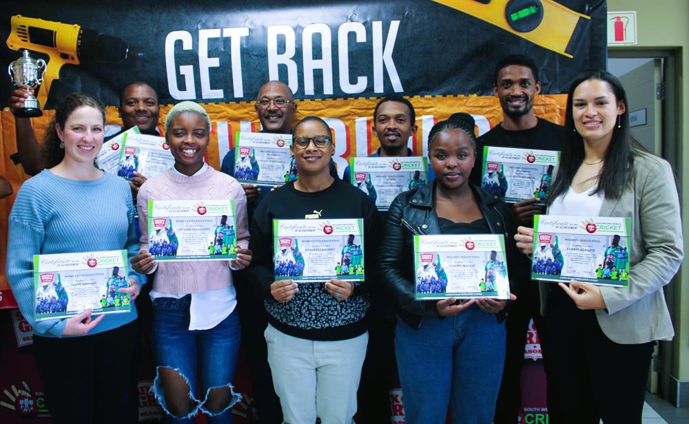 Skeidsregters wat in die onderskeie Six Gun Grill-klubligaeindstryde waargeneem het, het hul sertifikate ontvang: Hulle is voor, van links: Irene Howard, Chumisa Nxangashe, Haroline Rhodes, Asisipho Mafina en Kerrin Klaaste. Agter: Nathan Rhodes, Colin Wildeman, Lorenzo Priessex en Lyndon Volkwyn.