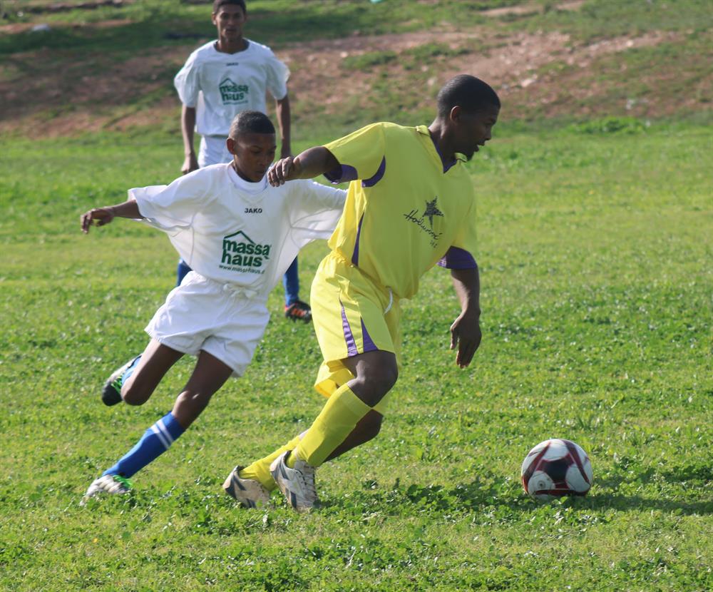 OUDTSHOORN SOKKERNUUS - Vriendskaplike wedstryde tussen plaaslike sokkerspanne het Saterdag opwindende spel by Bridgton Senior Sekondêr se rugbyveld opgelewer.